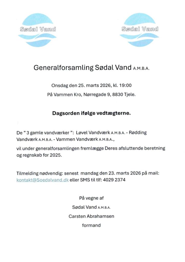 Vammen Vandværk indkalder til ekstraordinære generalforsamlinger