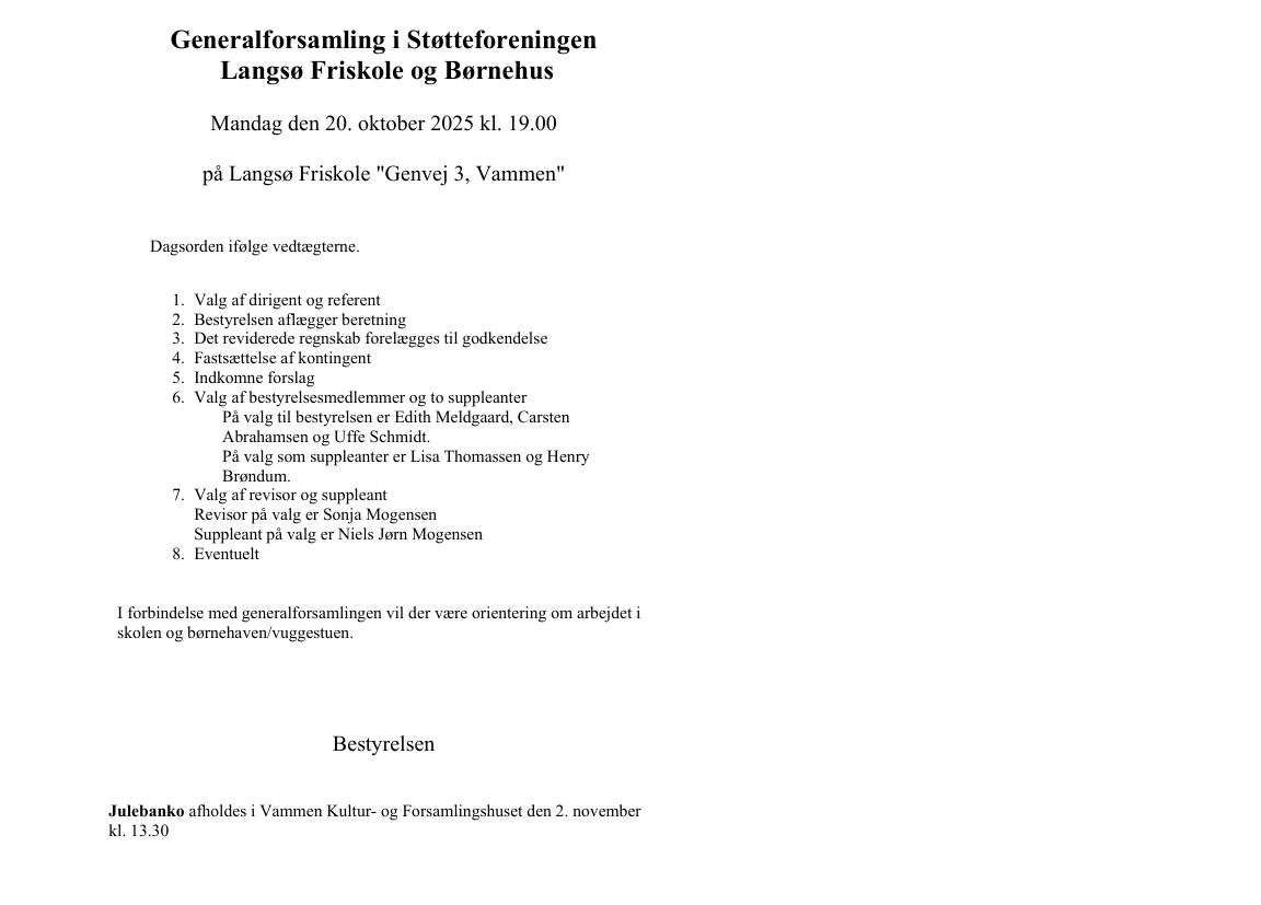 Oktober,2025 Generalforsamling - Støtteforeningen, Langsø Friskole og Børnehus Langsø Friskole Genvej 3 202520okt19:0021:00Generalforsamling - Støtteforeningen, Langsø Friskole og Børnehus Event detaljer Event detaljer Tid 20. Oktober, 19:00 - 20. Oktober, 21:00 StedLangsø Friskole Genvej 3 Arrangør Støtteforeningen Langsø Friskole og Børnehus Tilføj til Apple KalenderTilføj til Google Kalender Skriv et svar Annuller svarDu skal være logget ind for at skrive en kommentar.